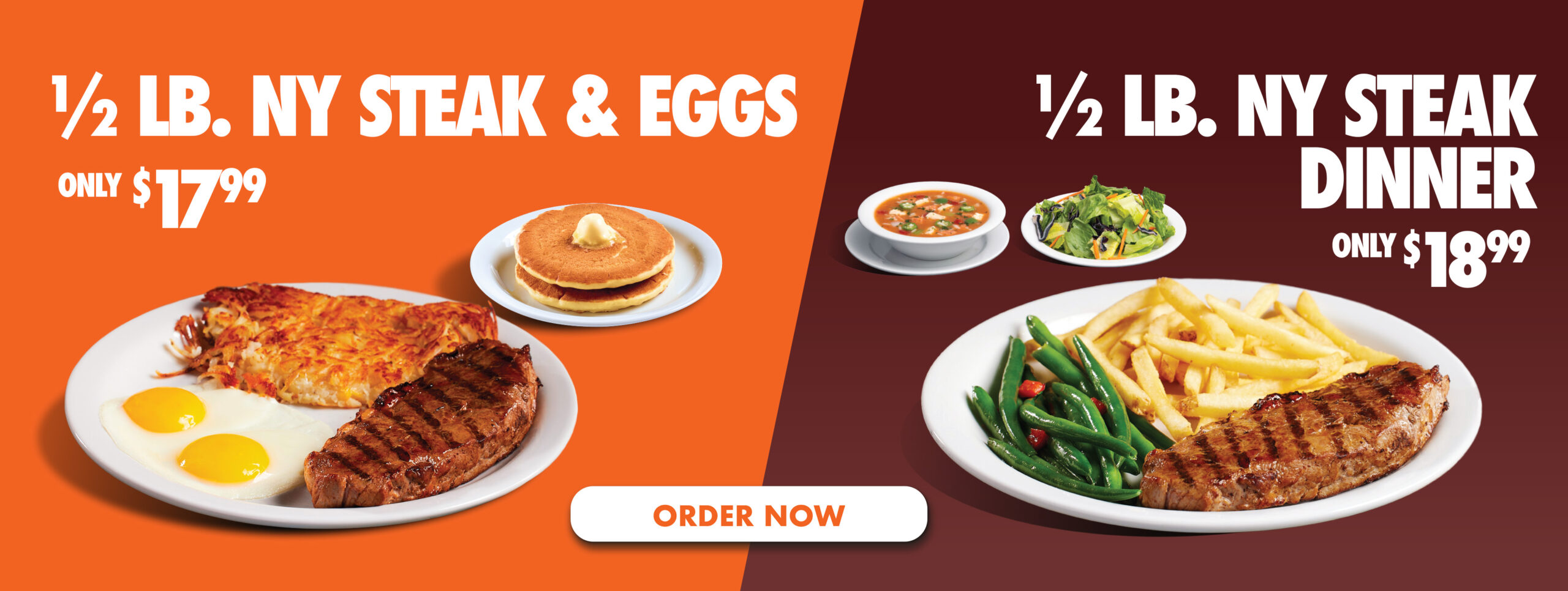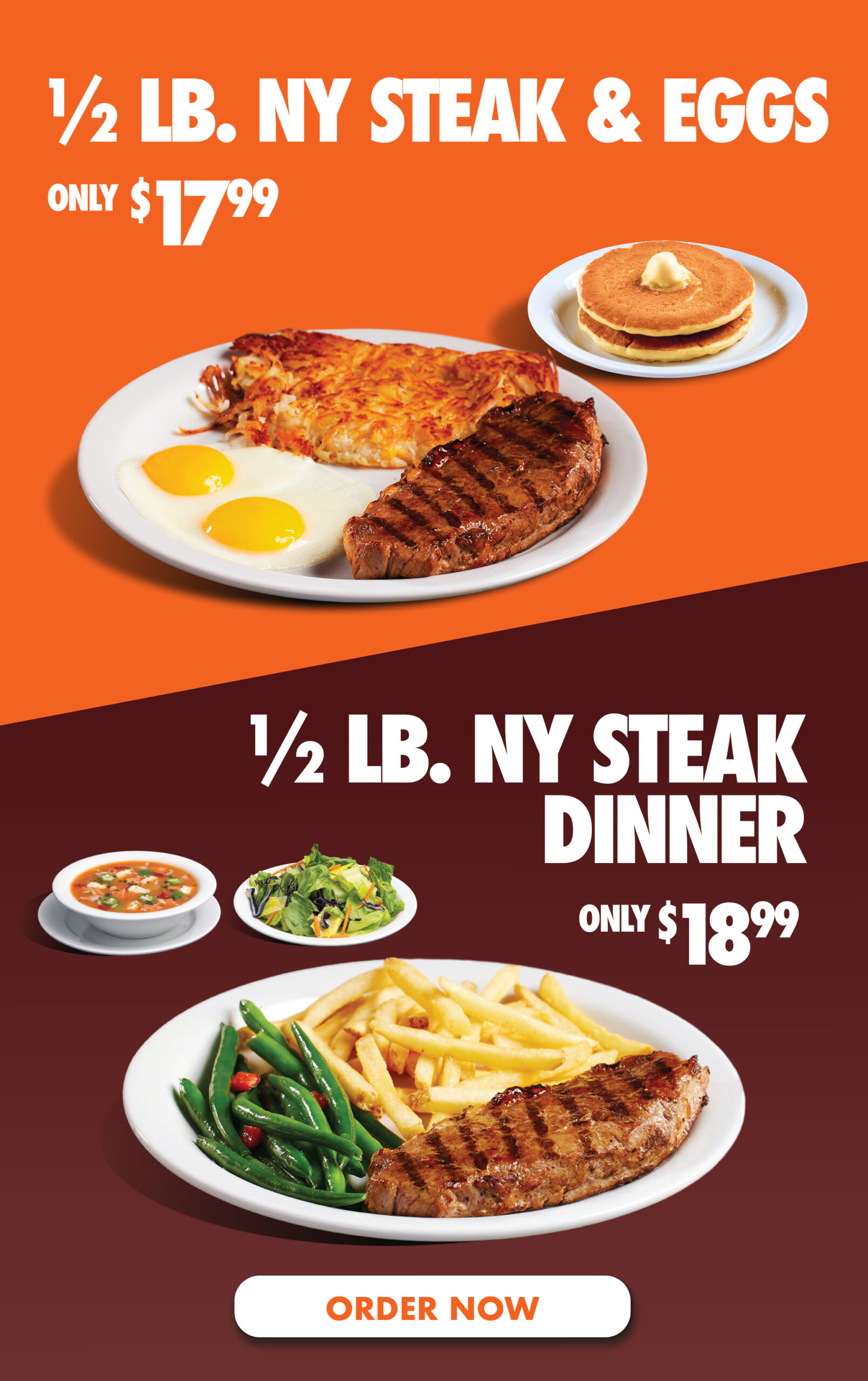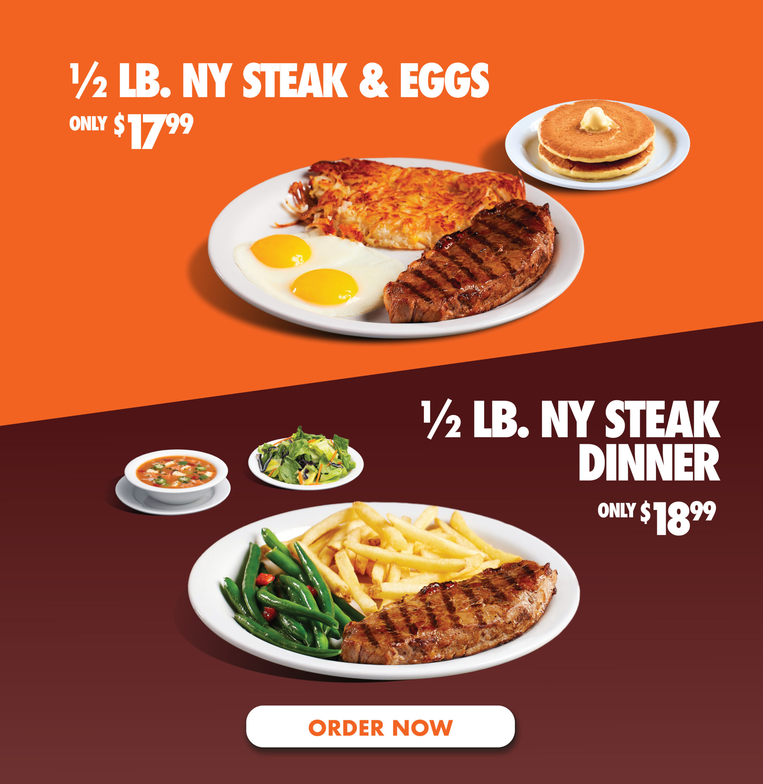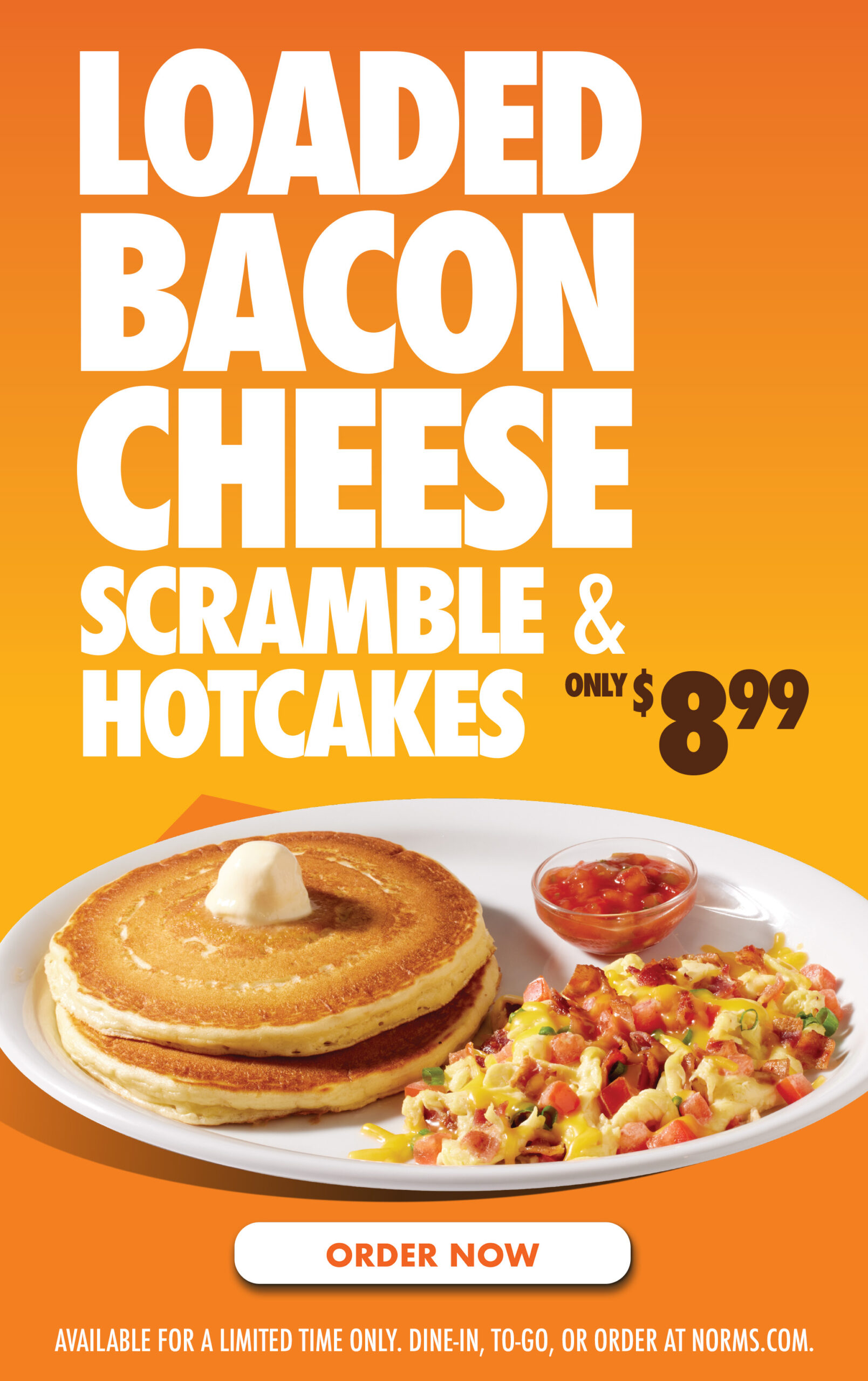 NORMS family restaurant offers a variety of delicious dishes. From hand-cut steaks to hotcakes, everything on our menu is prepared fresh, made-to-order, and available all day.