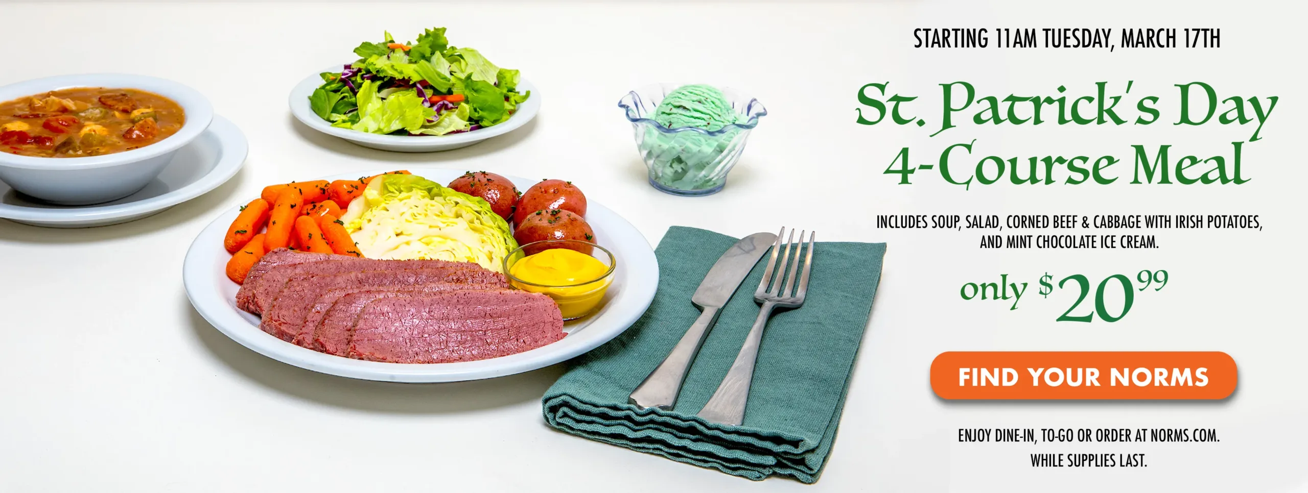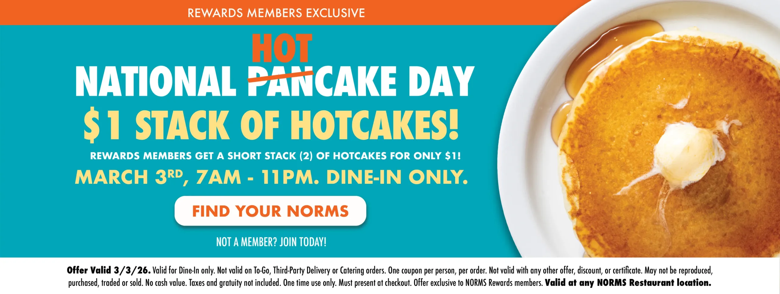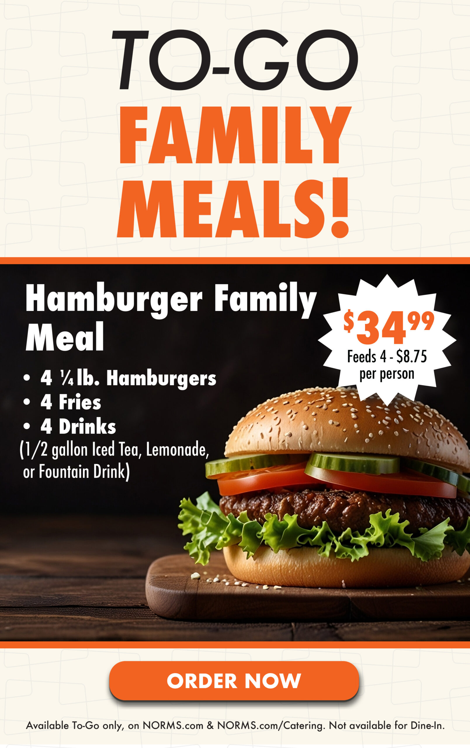 NORMS, established in 1949, is your family neighborhood restaurant, serving delicious, made-to-order meals near you. Known for our hand-cut steaks, hotcakes, and all-day breakfast, we pride ourselves on fresh ingredients and exceptional service. With a commitment to the community and a welcoming environment, NORMS is the go-to diner for families and friends to enjoy quality time and great food.
