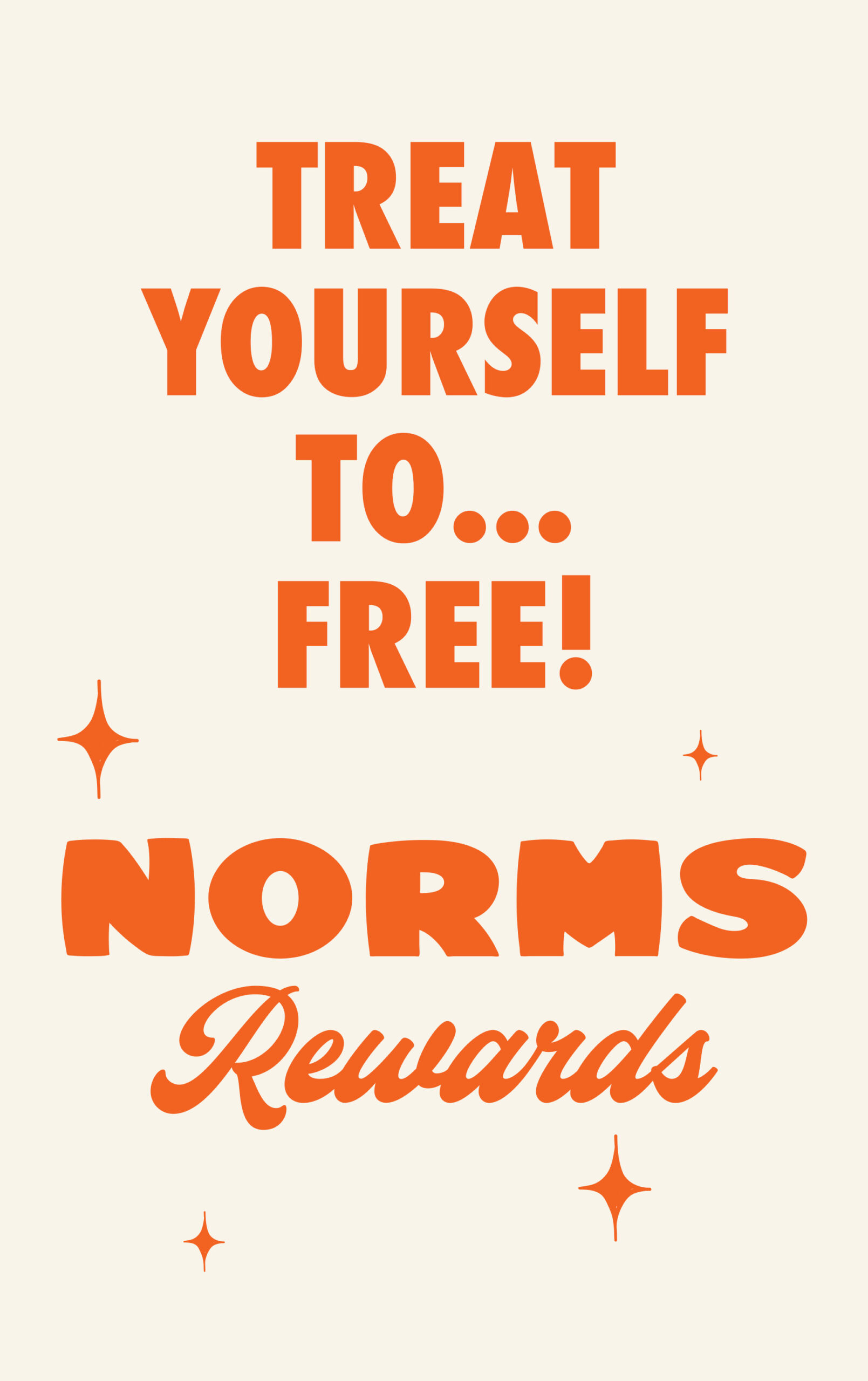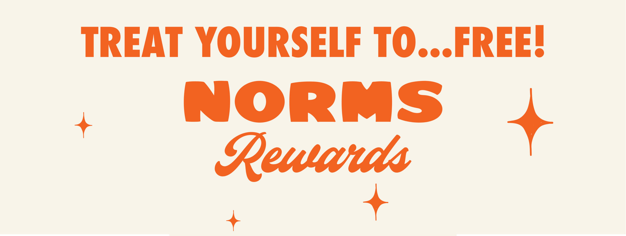 NORMS Rewards is our loyalty rewards program that allows you to earn points that you can redeem for discounts, free menu items, birthday rewards, and exclusive offers at any NORMS location. To get started, download the NORMS Rewards app from the Apple App Store or Google Play store, create an account, and begin using the app and earning points immediately.