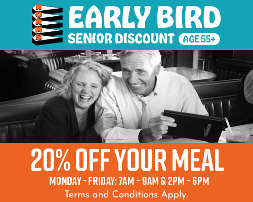 Join NORMS Rewards today and start earning points towards mouth-watering rewards! Earn 1 point for every $1 spent and when you join, you’ll receive a FREE BBB Breakfast Sandwich*. As a member, you can redeem points for delicious rewards, access to exclusive offers & challenges, birthday treat, bonus points, and much more!